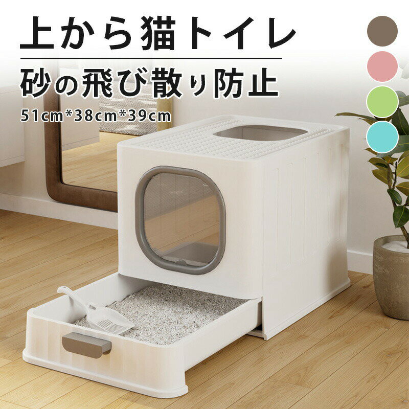 これで安心!猫ちゃん大喜びのトイレ選び猫トイレ 上から猫トイレ 猫砂 飛び散り防止 大型 おしゃれ 消臭 脱臭 2WAY入口 スコップ付き 掃除簡単 システムトイレ 上から入る 猫も飼い主も笑顔に!楽天市場の注目トイレグッズ ショップ:nu_BE